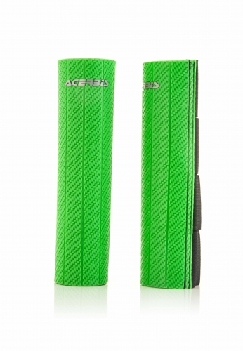 Kumiset etuhaarukansuojat carbon kuvioinnilla. Suojaa radan kuralta ja haarukan yläosan kulumiselta. Nopea kiinnitys, ei vaadi etuhaarukan irrottamista, sillä kiinnitys Velcrolla. Sopii etuhaarukkaan, minkä halkaisija 47/48 mm.