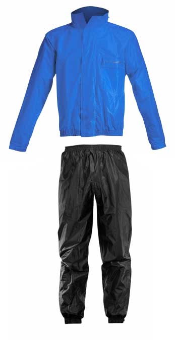 2-osainen Acerbis sadeasu. Materiaaleina 70% PVC, 30% Polyesteri. Sisusta Polyesterista ja pintamateriaali PVC:stä sekä Polyesterista. Säädettävät hihansuut Velcrolla. Takissa joustava helma paremman mukavuuden takaamiseksi. Lahkeissa vetoketjut. Heijastimet CE EN 471 hyväksytty. Takissa etupuolella vettäpitävä tasku. Huppu, mikä voidaan taitella vetoketjulliseen taskuun niskassa. Ilmastointikanavat sekä heijastimet selkäpuolella.